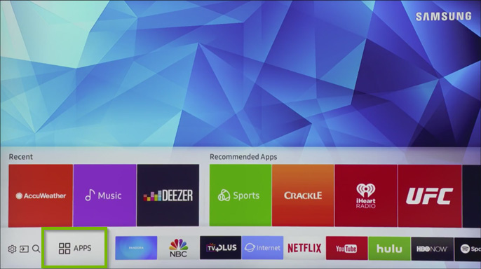 • Open het gedeelte ‘APPS’ in de Smarthub (Kan afwijken van afbeelding, afhankelijk van type TV)